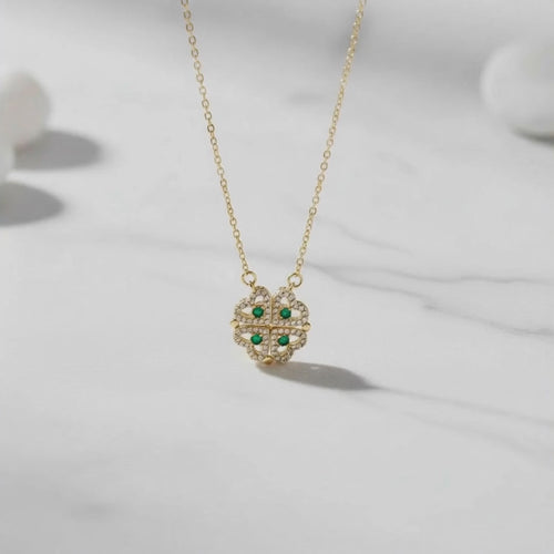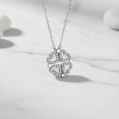Collar Personalizado de Corazón de Trébol de Cuatro Hojas y Circonita en 925 plata